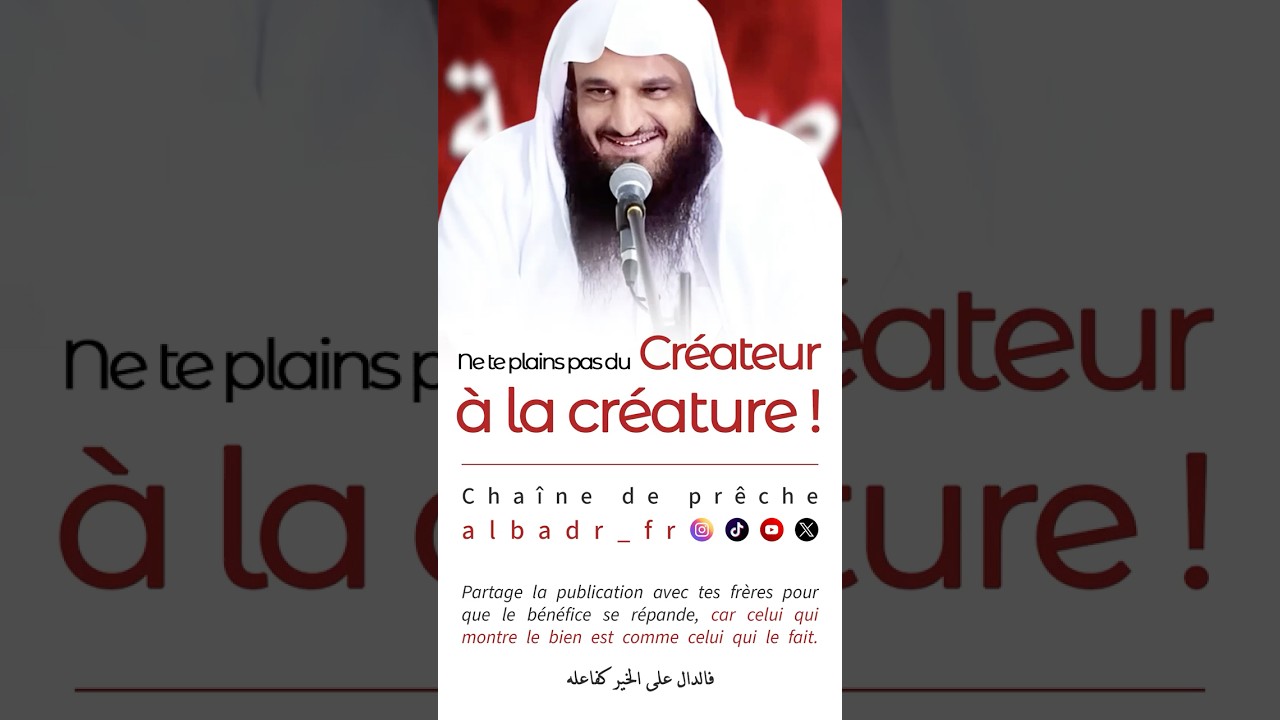 Ne te plains pas du Créateur à la créature. Par le Sheikh 'Abd ar-Razzaq al-Badr.